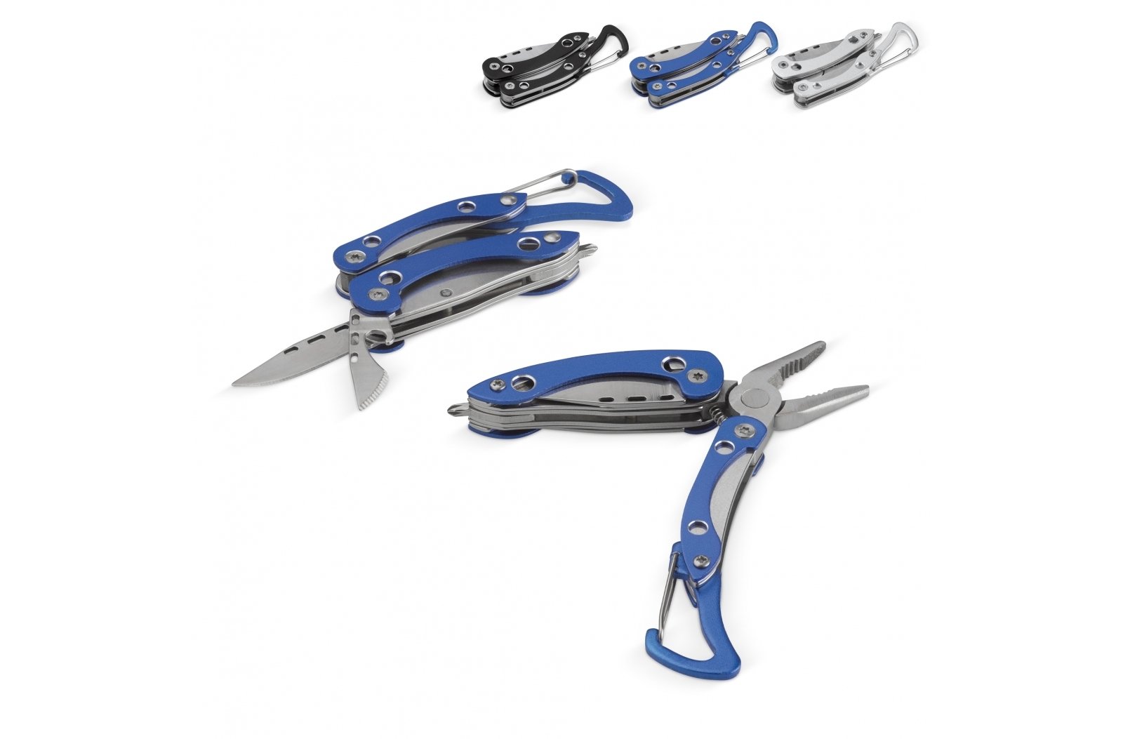 Narzędzie wielofunkcyjne zapewnia wiele różnych narzędzi na każdą okazję takich, jak nóż czy otwieracz do butelek. Możesz przyczepić urządzenie do torby za pomocą karabińczyka. Zostanie dostarczone wraz z pasującym pudełkiem prezentowym.