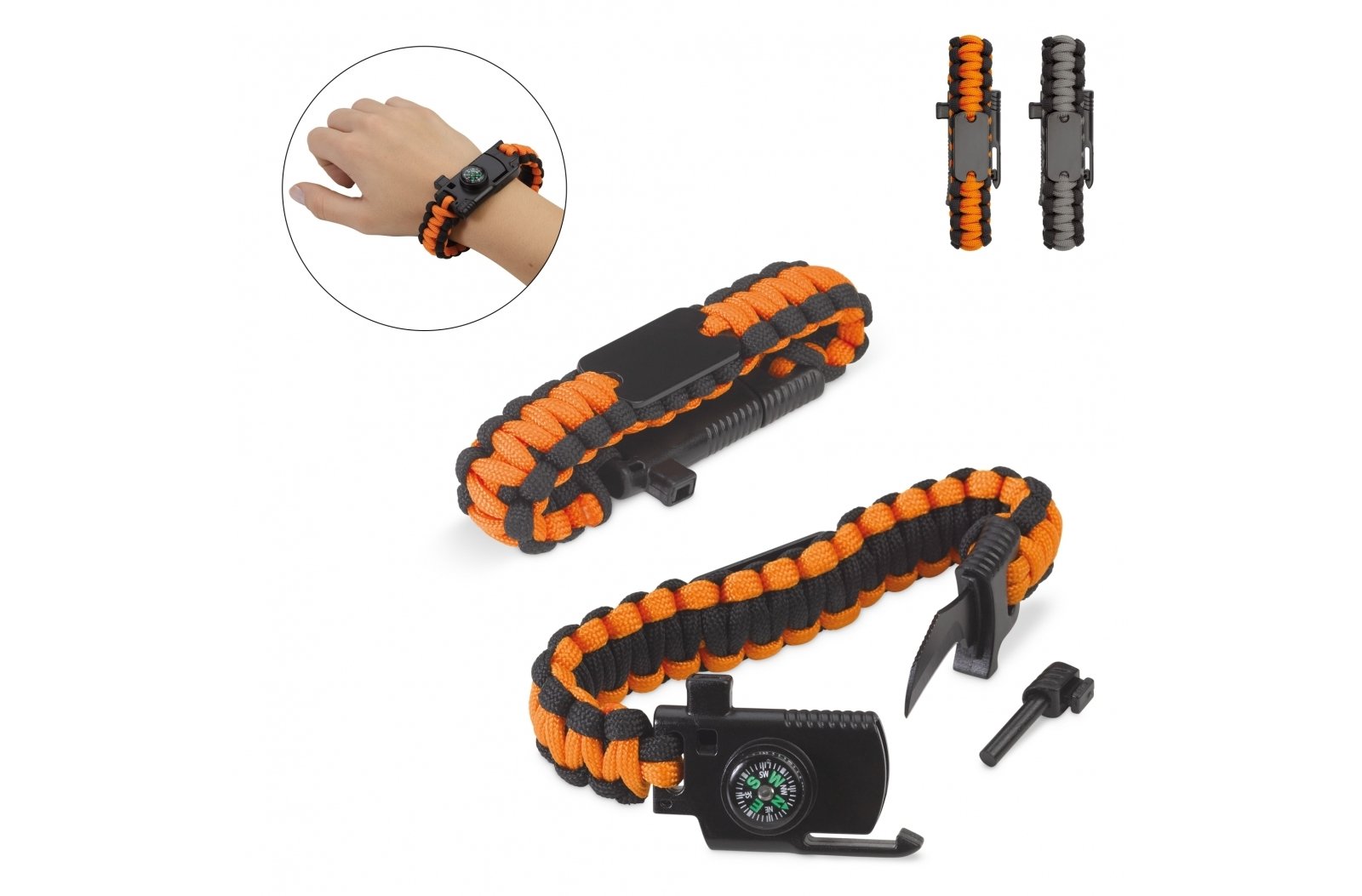 Opaska na rękę Survival zawiera w sobie kompas, nóż, gwizdek, krzesiwo, a w awaryjnych sytuacjach może zostać złączona w dwie liny, o długości 180cm każda. Must-have dla pasjonatów outdooru.