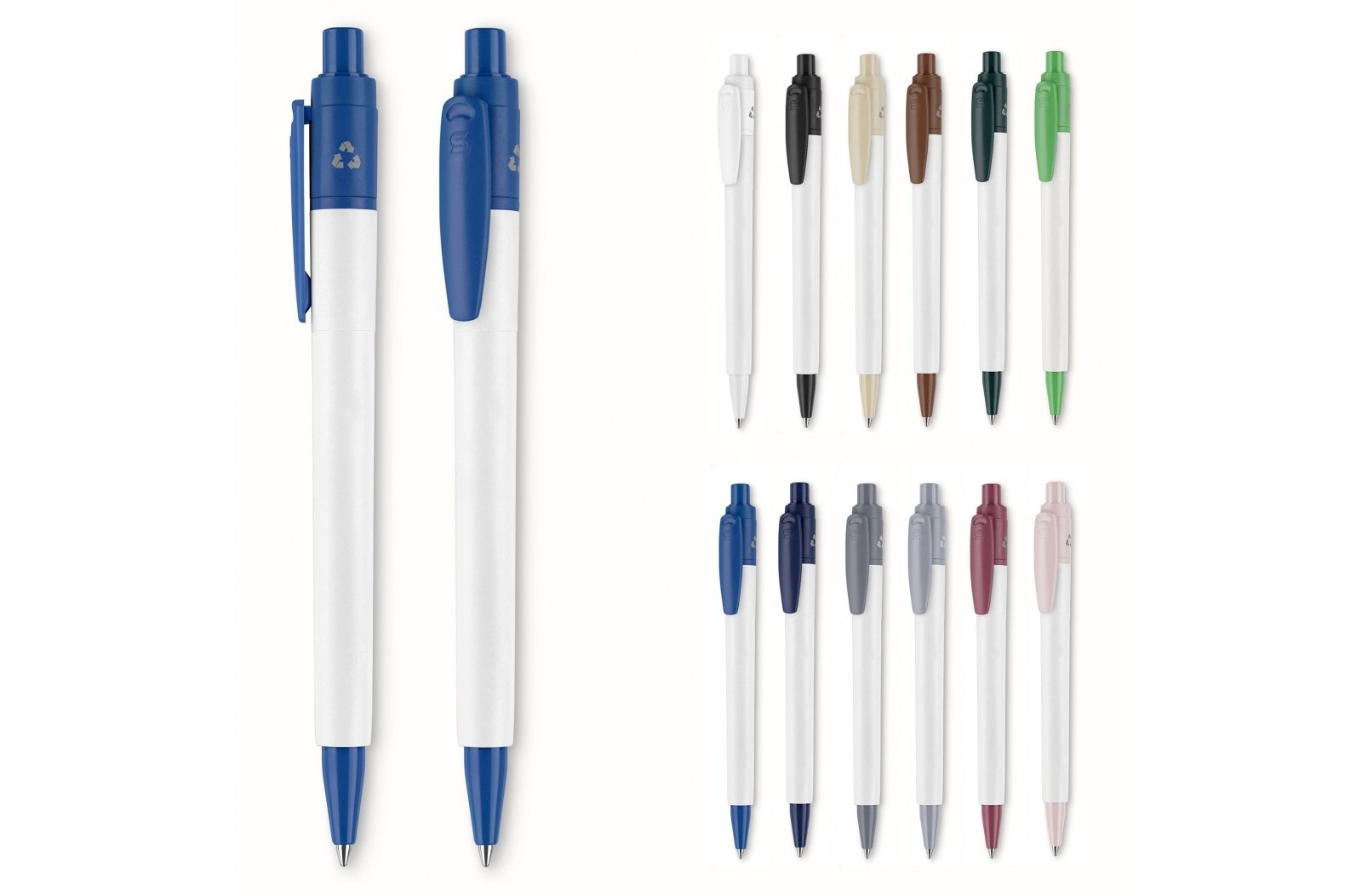 Popularny długopis nieprzezroczysty Baron 03 z materiałów pochodzących z recyklingu. Długopis jest wykonany w 100% z tworzywa ABS pochodzącego z recyklingu i został wyprodukowany w Europie. Kolory inspirowane „Naturą” na klipsie i przycisku tworzą efektowny wygląd. Z wkładem X20 z niebieskim tuszem do pisania i mechanizmem na przycisk. Dla zamówień od 5.000 sztuk możesz wybrać własną kombinację kolorów.