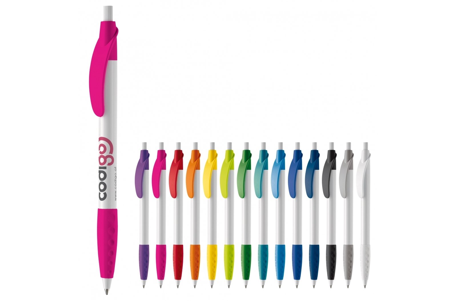 Elegancki długopis Toppoint z wygiętym klipsem i gumką. Stwórz całkowicie własny, dopasowany kolorystycznie produkt, idealnie promujący Twoją markę. Wkład X20 z możliwością wyboru koloru pisania. Pełnokolorystyczny.