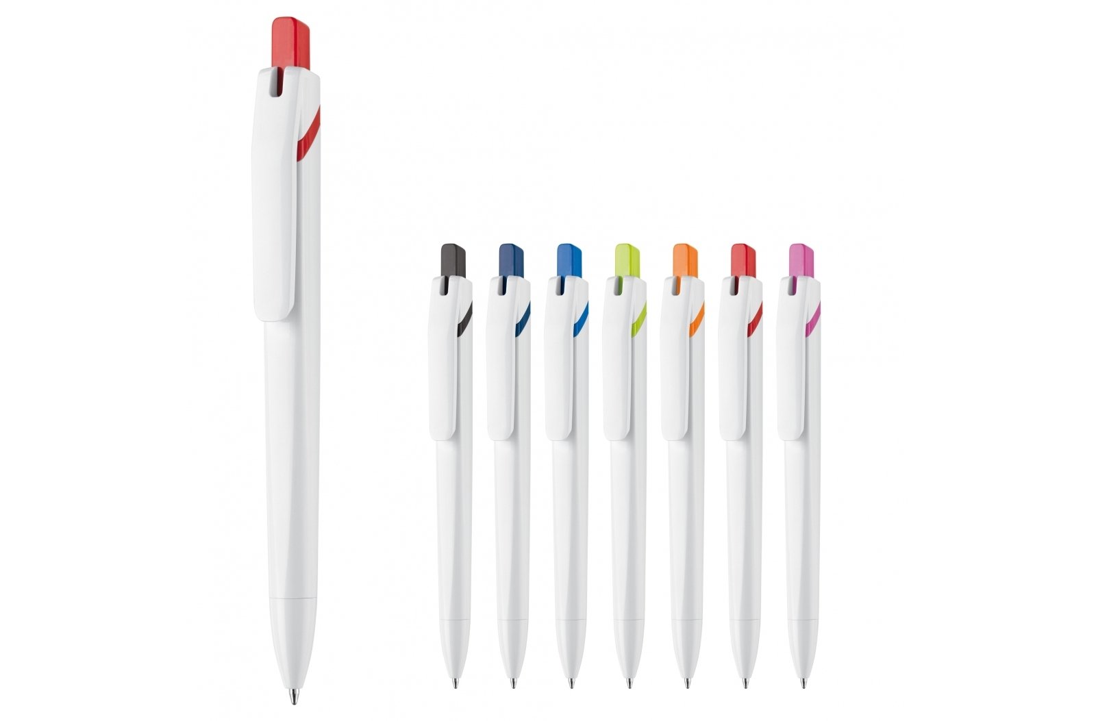Rewolucyjny długopis Toppoint. Unikalny geometryczny wygląd, gdzie kształt zmienia się z kwadratowego na okrągły. Wytrzymały plastikowy klips z dużą przestrzenią druku. Posiada niebieski wkład jumbo.