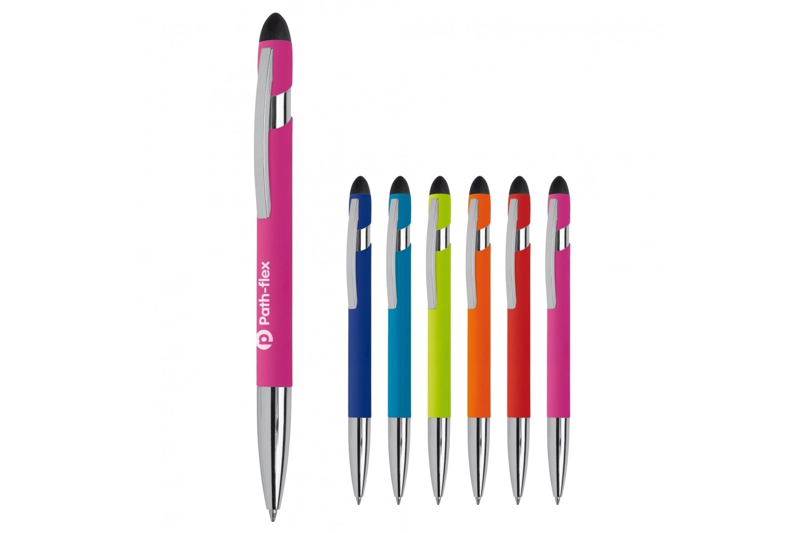 Aluminiowy długopis z gumową końcówką. Ten długopis z serii TopSmile posiada solidny metalowy klip i końcówkę touch do ekranów. Kolor wkładu niebieski.