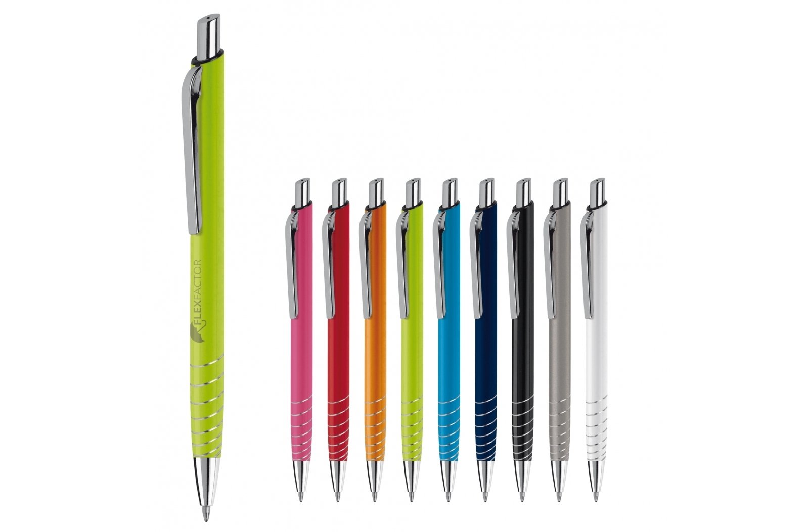 Aluminiowy długopis z metalowym klipem oraz mechanizmem push button. Zaprojektowany przez Toppoint, posiada skręcane pierścienie dla jeszcze lepszego wyglądu. Niebieski wkład.