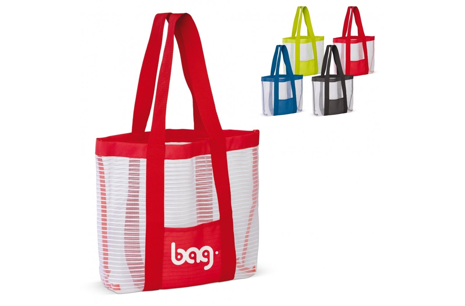 Ładna torba plażowa w jasnych kolorach. Dzięki materiałowi z siatki woda i piasek mogą być łatwo usunięte. Z przodu znajduje się duża, przydatna kieszeń.