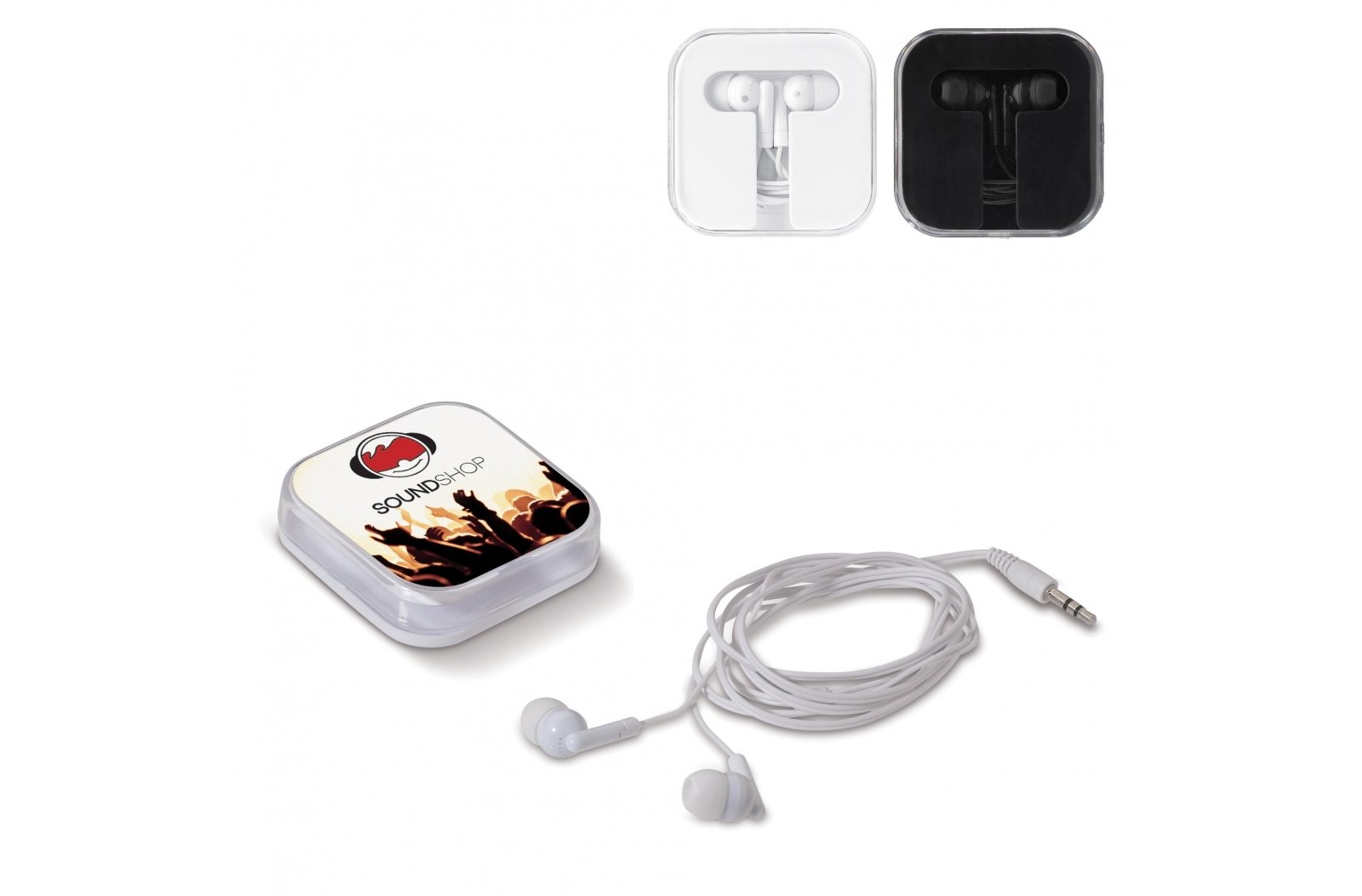 Słuchawki w plastikowym pudełku z przezroczystą pokrywą. Kabel długości 1 m., uniwersalną wtyczką 3,5 mm.