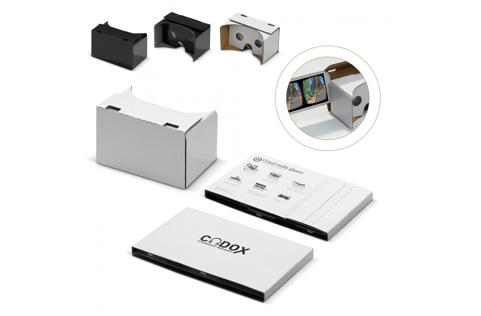 Doświadcz różnych możliwości naszych wirtualnych okularów, Virtual Reality Glasses w super cenie! Kartonowa wersja naszych okularów jest łatwa w złożeniu i pomieści smartphone o max. Średnicy ekranu 12cm.