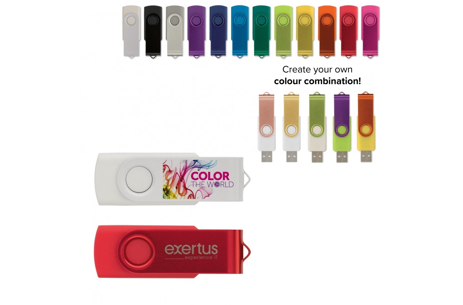 Popularna pamięć USB 3.0 z aluminiowym przekręcanym elementem osłaniającym USB. Produkt dostępny w 12 kolorach, dostarczany w białym pudełku kartonowym.