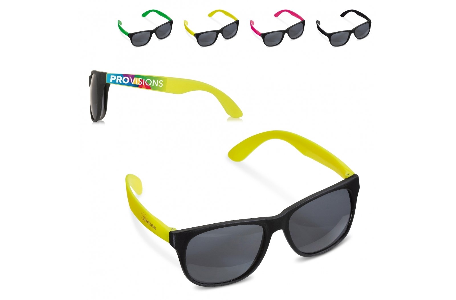 Modne okulary przeciwsłoneczne z kolorowymi wstawkami.