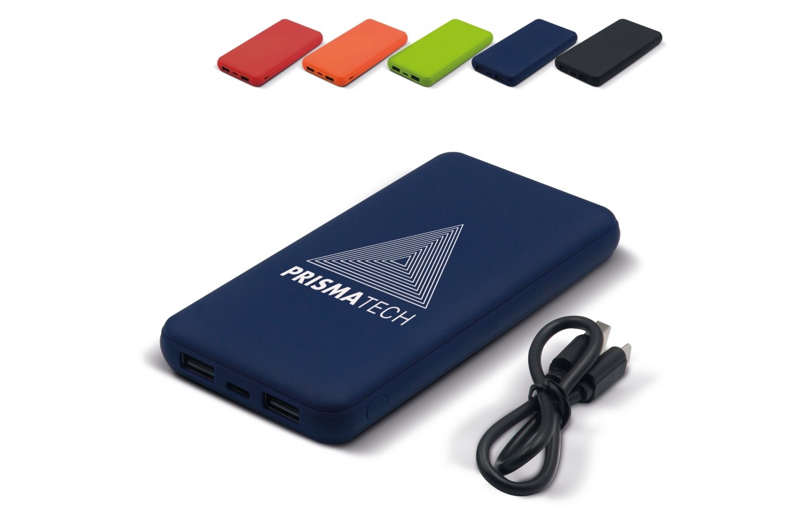 Powerbank z serii Elite o pojemności 8,000mAh. Gumowa konstrukcja idealna do ładowania urządzeń mobilnych w podróży. Powerbank zawiera dwa porty USB-A i port Type-C, dzięki czemu nadaje się do większej liczby rodzajów kabli ładujących. Dostarczany w pudełku upominkowym.