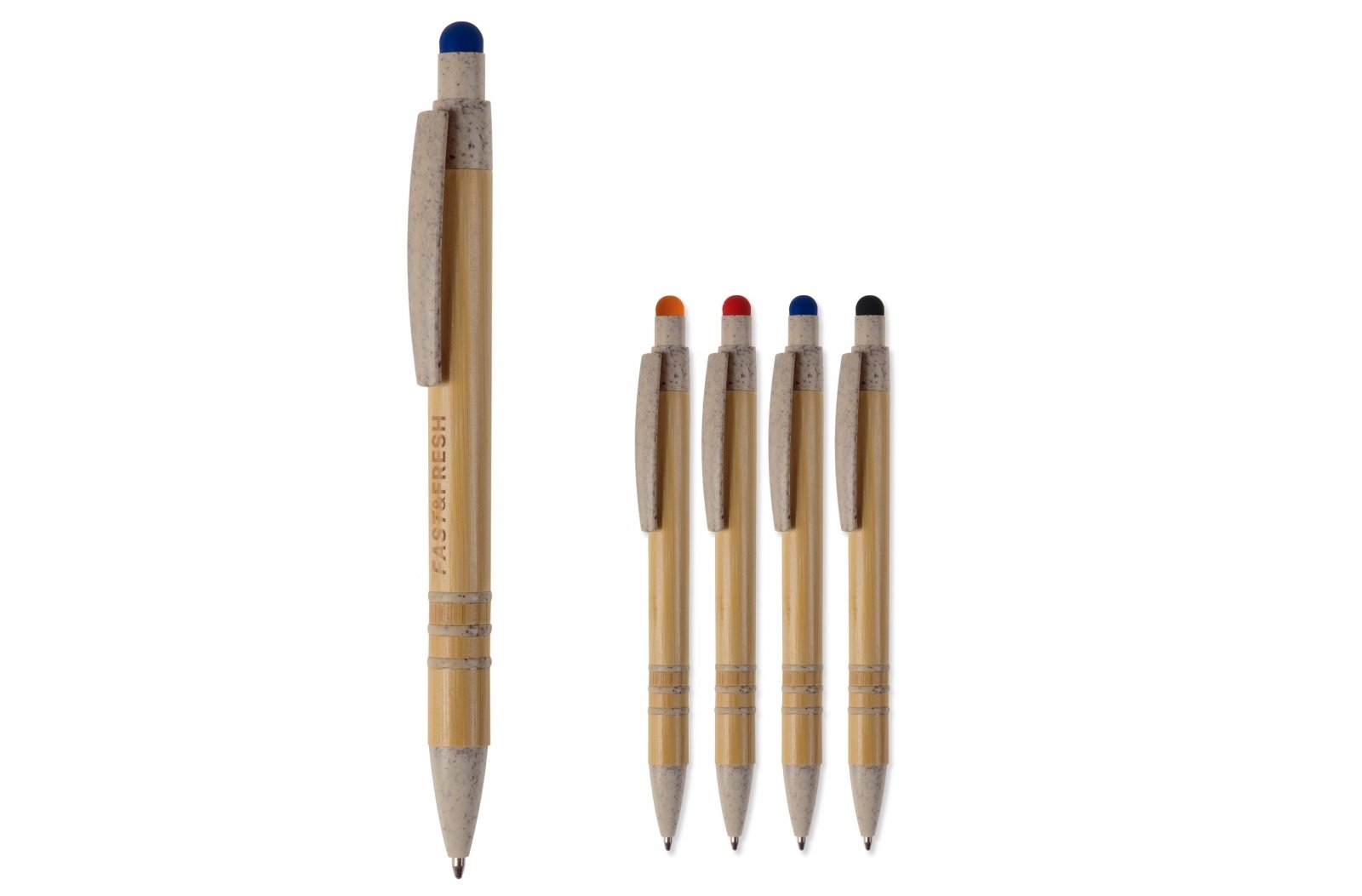 Długopis wykonany z bambusa oraz słomy. Przycisk posiada końcówkę do obsługi ekranów dotykowych. Ciekawy oraz intrygujący gadżet promocyjny.