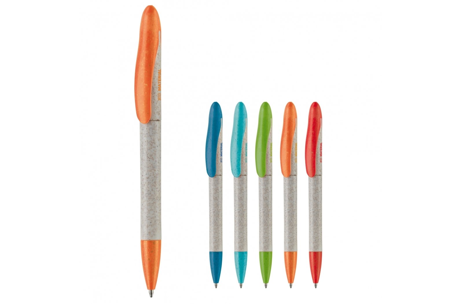 Długopis TopEarth Speedy z kolorową końcówką i klipsem, wyposażony w mechanizm obrotowy. Długopis wykonany jest w 60 procentach ze słomy pszenicznej i w 40 z plastiku ABS. Dostępny w różnych, modnych kolorach. Niebieski wkład.