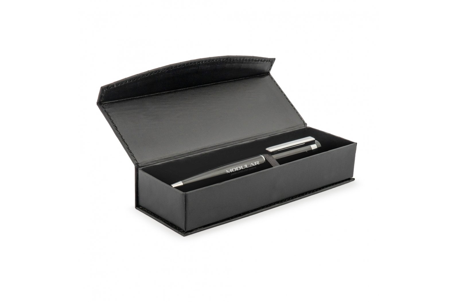 Luksusowy długopis posiada ciężkie metalowe elementy, które nadają mu elegancki wygląd. Długopis posiada metalową nasadkę. Zapakowany w luksusowe opakowanie upominkowe. Kolor atramentu: niebieski.