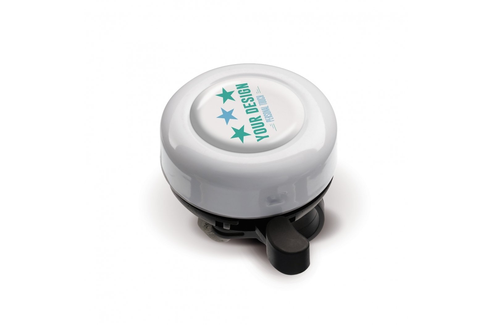Metalowy dzwonek z plastikowym uchwytem.