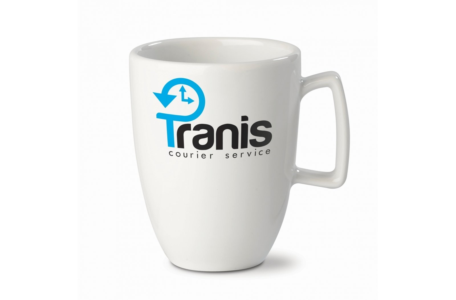 Kubek wykonany z białej porcelany.