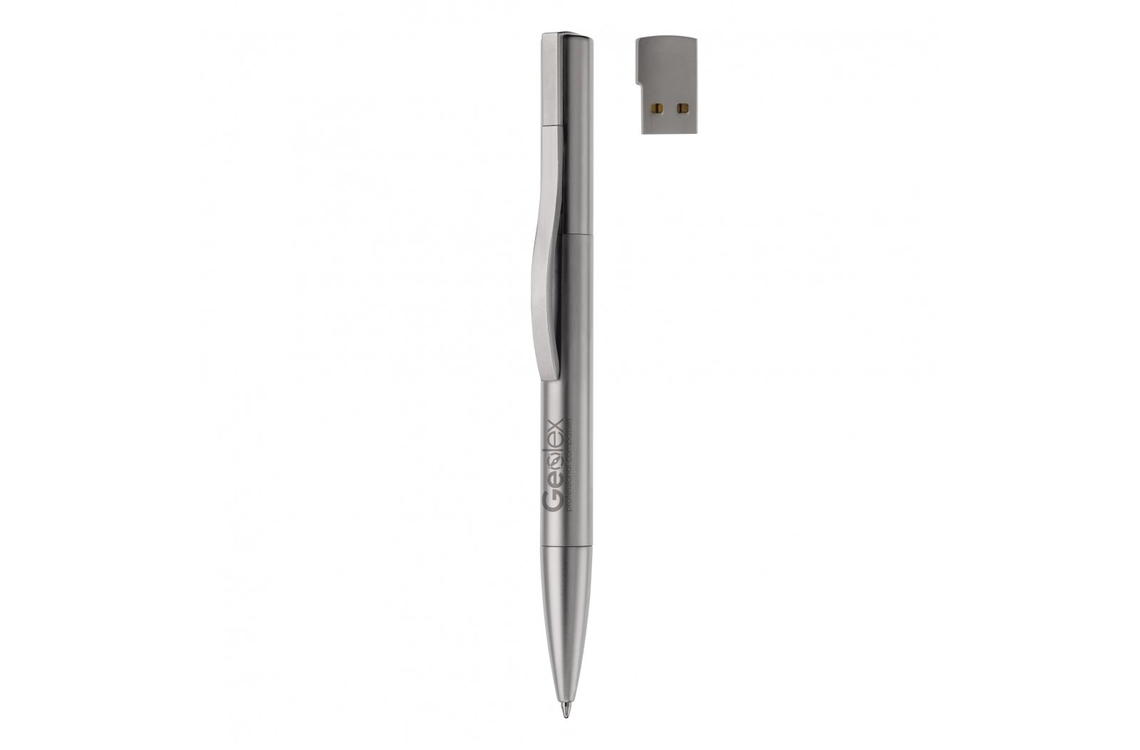 Metalowy długopis BusinessTop z wbudowaną pamięcią USB 2.0. Do wyboru pojemność pamięci 4 GB i 8GB. Zawiera europejski, metalowy niebieski wkład.