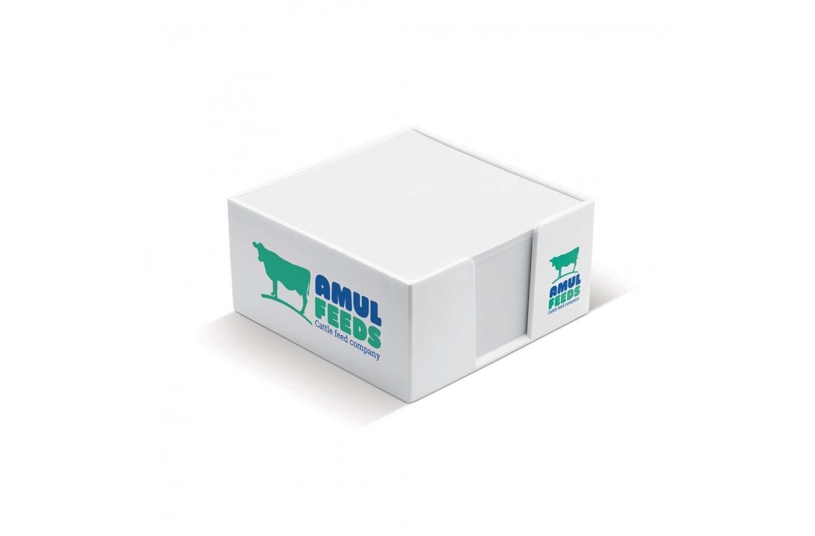 Poręczny pojemnik z białymi karteczkami. Możliwy nadruk na bokach pojemnika oraz na każdej kartce osobno. Ok. 320 kartek. 90g/m².