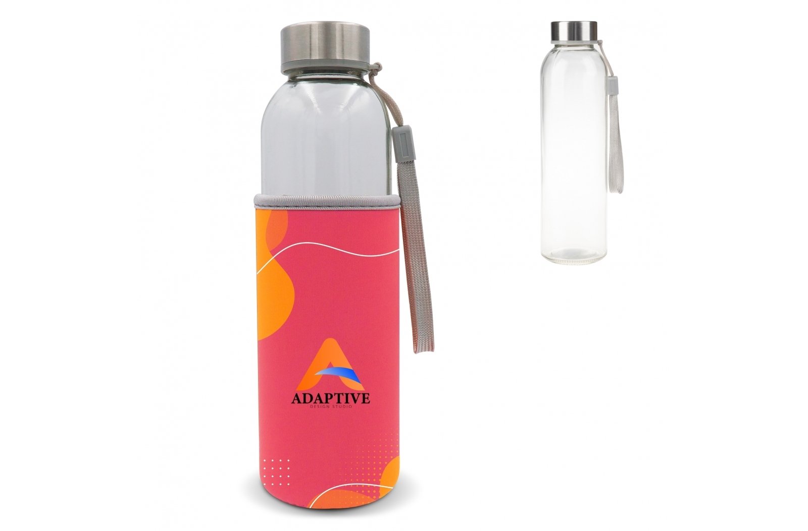Szklana butelka z rękawem o pojemności 500ml. Zapewnia, że napoje dłużej pozostają chłodne dzięki dopasowanemu do niej rękawowi. Posiada pasek przy nakrętce, dzięki czemu można ją łatwo nosić. Nadaje się do napojów zimnych, gazowanych i niegazowanych. Rękaw może być nadrukowany metodą full-colour oraz all-over.