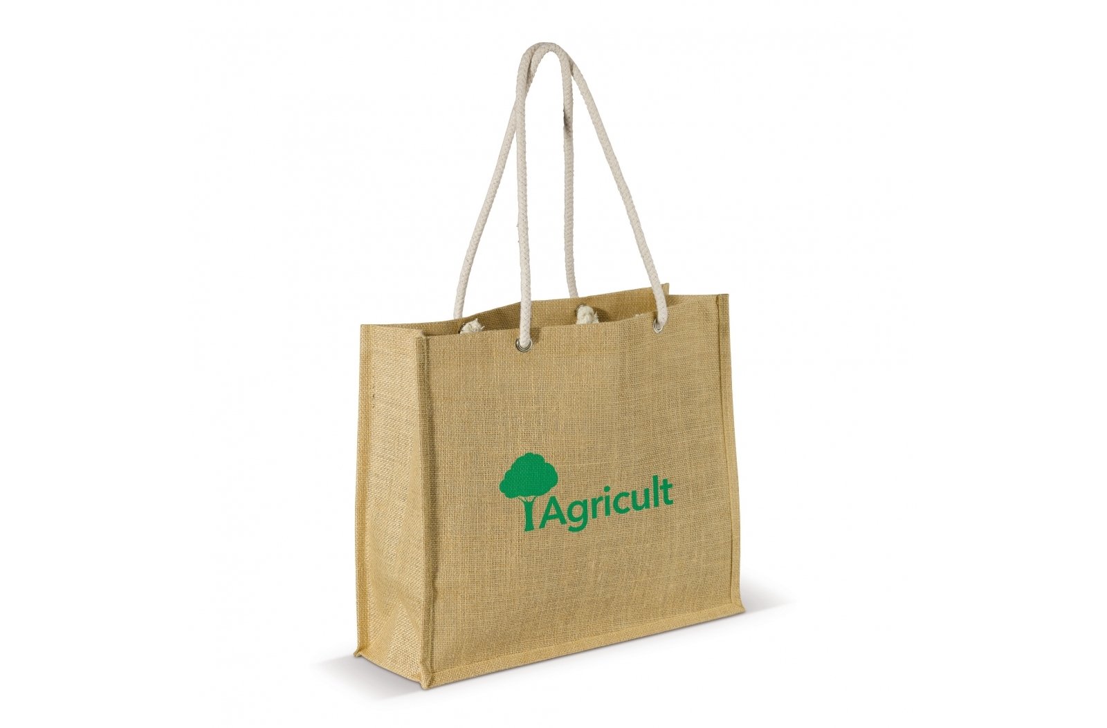 Torba na zakupy wykonana z juty, uchwyty z bawełny. Ekologiczny upominek.