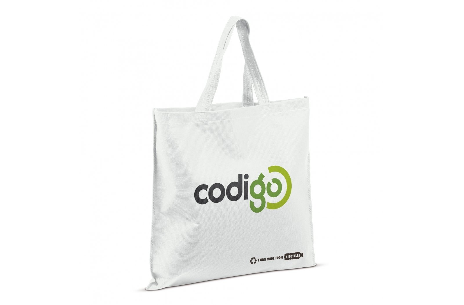 Torba wyprodukowana z czterech butelek PET pozyskanych z recyklingu. Dołącz do redukcji odpadów przy użyciu naszej torby wykonanej z materiałów odnawialnych.