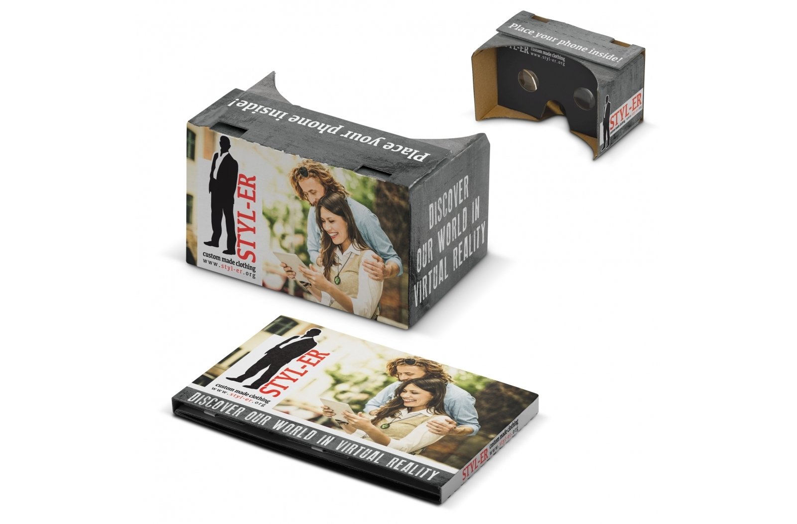 Doświadcz możliwości wirtualnych okularów w atrakcyjnej cenie! Papierowa wersja Virtual Reality Glasses jest łatwa w złożeniu i mieści smarphone o średnicy ekranu 12cm. Istnieje możliwość nadruku full-kolor zarówno na opakowaniu jak i okularach.