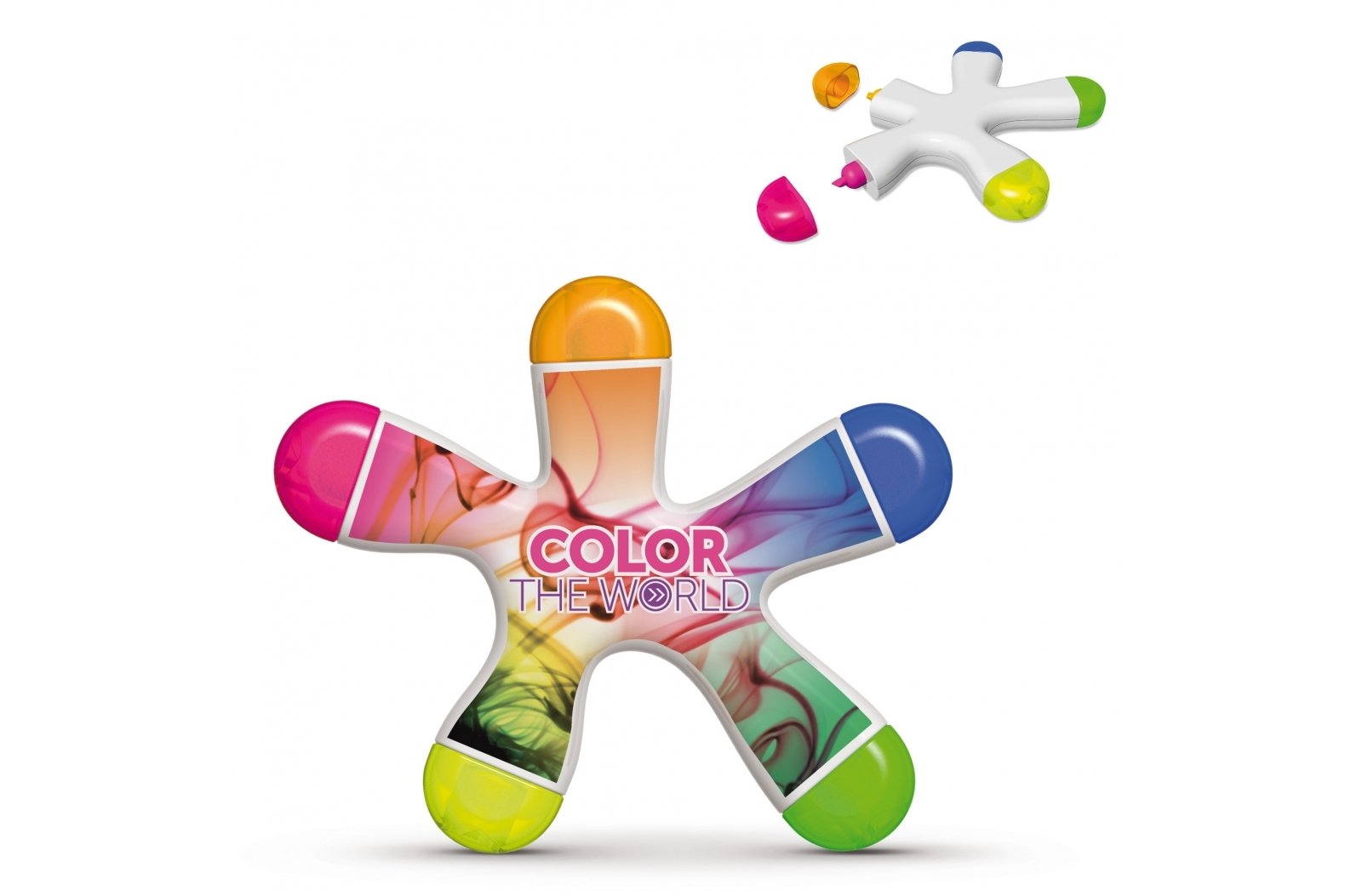 Zabawny zakreślacz z 5 różnymi kolorami zakreślania. Nadruk na obudowie. Unikatowy model zaprojektowany przez TopSmile.