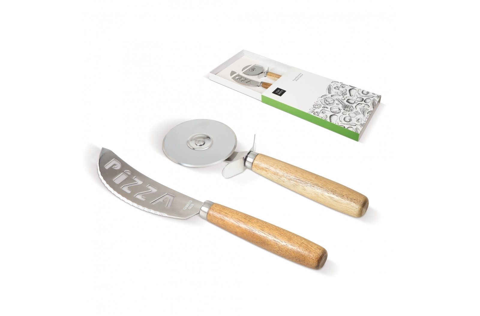 Poręczny zestaw do pizzy krajalnica do pizzy oraz nóż, pozwoli pokroić Twoją pizzę w idealny sposób! Drewniany uchwyt Acacia daje produktowi luksusowy wygląd. Zapakowany w prezentowe pudełko.